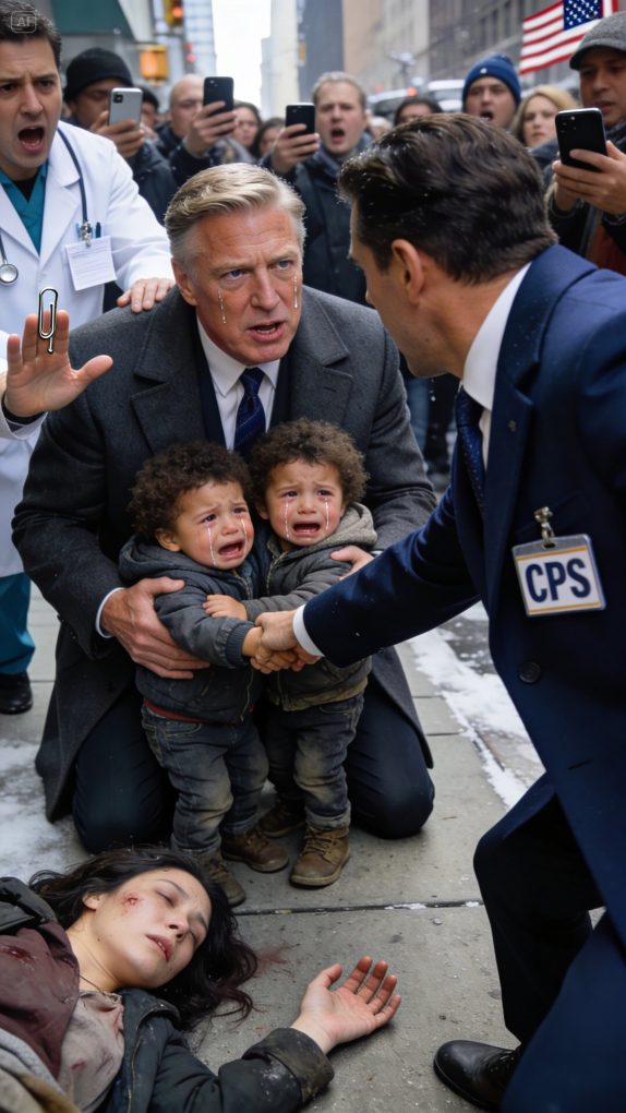 Before Ethan could answer, a man in a tailored navy coat strode into the waiting area, flanked by two private guards. His gaze locked on the twins. “There you are,” he said smoothly. “I’m with Child Protective Services. These children are coming with me.”