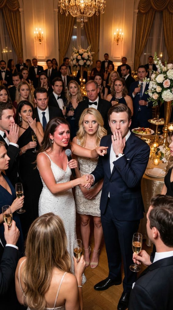 The ballroom no longer sounded like an engagement party. The violinists had gone silent. Champagne flutes remained half raised in midair. The event photographer, who should have lowered her camera out of decency, instead kept shooting because she could already sense this would become the real story of the night. At the back of the room, older relatives were whispering in fast, vicious little bursts. Near the stage, the bridesmaids stood in a cluster of shock and discomfort, no longer sure which woman they were expected to stand beside.