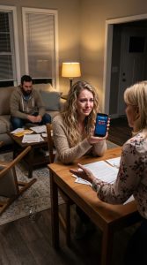 The recording crackled slightly through the small phone speaker, but there was no mistaking Tyler’s voice. I had lived with him for almost a year. I knew his tone, the way he paused before finishing sentences. Hearing it in that recording made my chest tighten with dread. “She’ll be back around midnight,” Tyler’s voice said calmly. Another man responded with a low laugh. “And you’re sure she won’t suspect anything?” Tyler replied quickly. “Ashley trusts me. She won’t see it coming.” My hands began to shake. I stopped the recording halfway through and looked up at Marcus. “Where did you get this?” I asked. Marcus kept both hands resting on the steering wheel. “I live in your building,” he said. My mind struggled to keep up. “What?” I said again. He nodded toward the phone still in my hands. “I left my apartment earlier tonight to start driving,” he explained. “When I passed your door, it wasn’t completely closed. I heard voices inside.” My stomach twisted. “Tyler was supposed to be asleep,” I whispered. Marcus continued carefully. “I heard your name in the conversation. That’s when I realized something was wrong.” I stared at him, unsure whether to believe what he was telling me. But the recording had been real. I had heard Tyler’s voice with my own ears. “So you recorded them?” I asked slowly. Marcus nodded. “I didn’t know what they were planning, but it didn’t sound good.” My heart felt like it was beating too fast inside my chest. Suddenly my own phone buzzed in my hand. I looked down at the screen and saw a text message from Tyler. “Hey babe, are you almost home?” The message made my stomach drop. If the recording was real, then Tyler wasn’t asleep at all. He was waiting for me. “Reply to him,” Marcus said quietly. “Tell him you’ll be there soon.” I looked up at him nervously. “Why?” Marcus glanced at the phone again. “Because if he thinks you’re coming home, he’ll stay there.” My pulse raced as the meaning of those words settled in my mind. Tyler wasn’t just waiting for me. He was planning something.