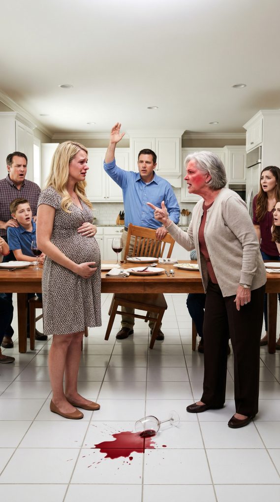 I didn’t fight back. I didn’t swing. I didn’t raise my voice. I looked him in the eye and said, as steadily as I could with his fingers pressing into my neck, “Let go.” Something in my tone—or maybe in the silence of everyone watching—made him release me. He shoved me backward instead. “Get off my property,” he snapped.
