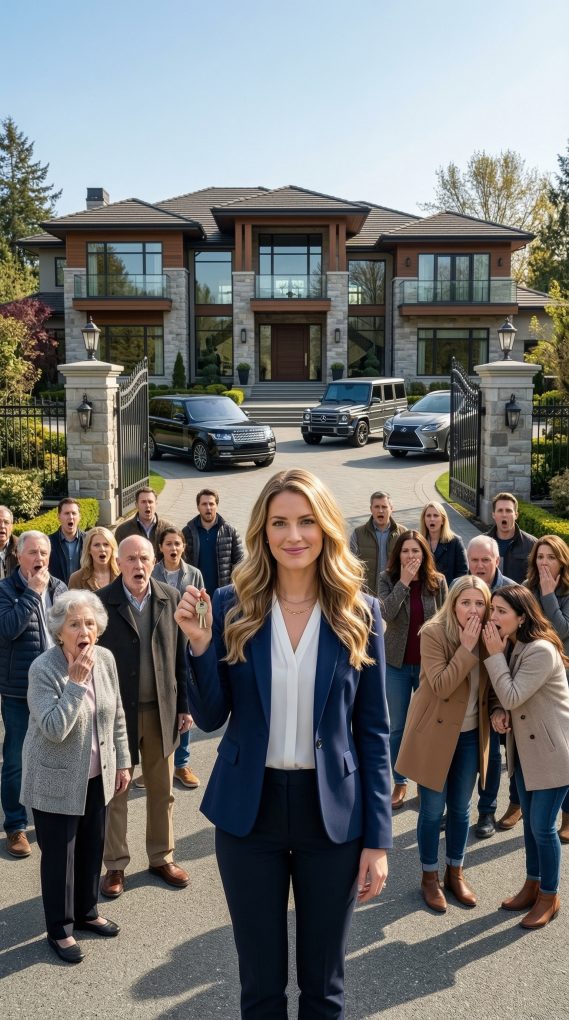 My name is Emily Carter, and growing up in my family meant learning one thing very quickly. No matter what I did, it was never impressive enough for my mother. Linda Carter had a talent for turning every small mistake of mine into a family story that everyone laughed about during holidays. When I moved away from home at twenty three to build my own life in Seattle, she told every relative that I would fail within a year. I never argued with her. I simply focused on working. The first years were difficult. I lived in small apartments, worked long hours in real estate offices, and spent nights studying investment strategies. Slowly things began to change. One successful project led to another, and eventually I started my own property development company. But I rarely talked about it with my family because I knew what their reaction would be. A few months ago I finally decided to move into the home I had designed for myself outside Bellevue Washington. It was the biggest project I had ever completed. When I mentioned the move during a phone call, my mother immediately began making jokes. She assumed I had bought a cheap place in a bad neighborhood. Apparently she thought the story was so entertaining that she invited nearly fifty relatives to attend my housewarming. My cousin Tyler warned me that many of them were coming only because my mother promised they would witness something embarrassing. According to her, I had spent years pretending to be successful and now everyone would see the truth. When the day finally arrived, I stood calmly near the entrance of my new property holding the remote for the iron gate. In the distance I could see a long line of cars slowly driving down the private road. Laughter echoed across the quiet street as relatives stepped out of their vehicles. My mother walked confidently at the front of the group explaining to everyone that the place probably looked worse than they imagined. Several people were already whispering jokes about tiny apartments and broken buildings. I let them talk while they gathered outside the large gate at the end of the driveway. My mother finally turned to me with a satisfied smile and asked if this was really where I lived now. I nodded and pressed the remote in my hand. The tall iron gates began to open slowly. As they separated, revealing the long driveway and the massive house behind it, the laughter disappeared instantly.