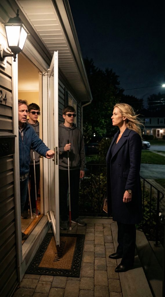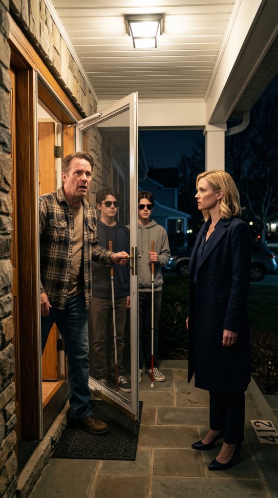 My name is Michael Carter, and eighteen years ago my life changed in a way I never expected. My wife, Rachel, and I had just welcomed our twin sons into the world at a hospital in Denver Colorado. What should have been the happiest day of our lives turned into something completely different when the doctors quietly explained that both babies had been born blind. I remember holding them in my arms for the first time while Rachel stood near the window looking out into the parking lot. She barely said a word. Later that night she whispered something I will never forget. She said she was not strong enough to live the kind of life those children would need. The next morning she was gone. She left the hospital without saying goodbye, leaving me alone with two newborn boys who needed more care than I knew how to give. For the next eighteen years I raised Ethan and Lucas by myself. It was not easy, but those boys became the center of my world. They learned to navigate life with incredible determination. They attended a special school for visually impaired students and eventually became two of the most capable young men I had ever known. Our home was full of music, laughter, and the sound of their white canes tapping confidently across the floor. Rachel never contacted us once during those years. I eventually stopped expecting her to return. One quiet evening, just a few months after the twins turned eighteen, I was sitting in the living room when the doorbell rang. It was late enough that the neighborhood was almost completely silent. When I opened the door, the person standing on the porch made my heart stop. Rachel looked older but unmistakably the same. Her blonde hair was tied neatly behind her head and her expression was calm, almost emotionless. For a moment neither of us spoke. Then she looked past me toward the hallway where my sons were standing and said something that turned the air cold. She said she had come back for one reason. She said it was time for one of the boys to come with her.