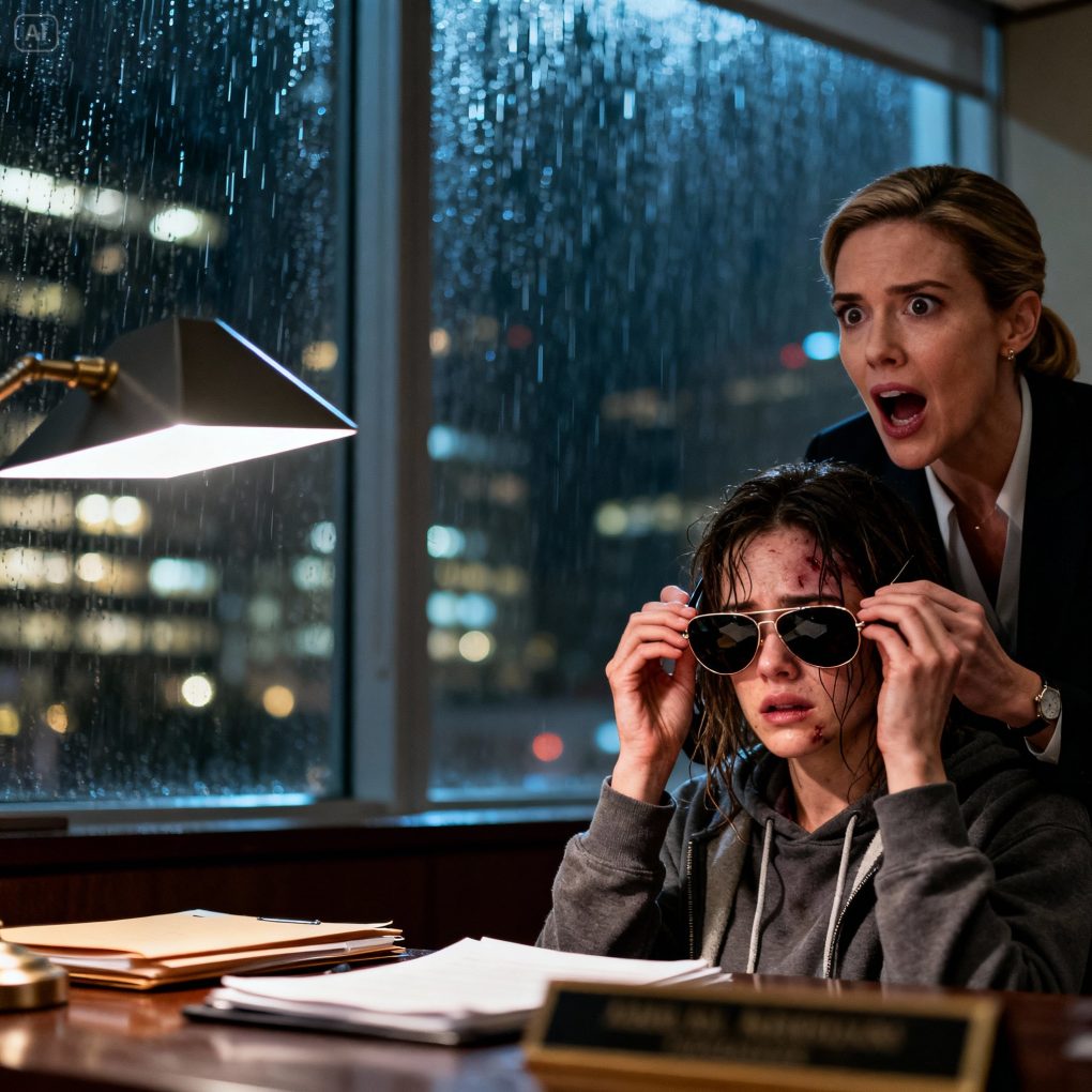 She looked like a shadow wearing my sister’s face. Sunglasses indoors. Hoodie pulled tight even though it was warm. When I locked my office door and gently pulled the glasses off, my stomach dropped. One eye was swollen nearly shut. A purple bruise bloomed across her cheekbone. And on her neck—clear as ink—were fingerprints, stamped into the skin like a signature.