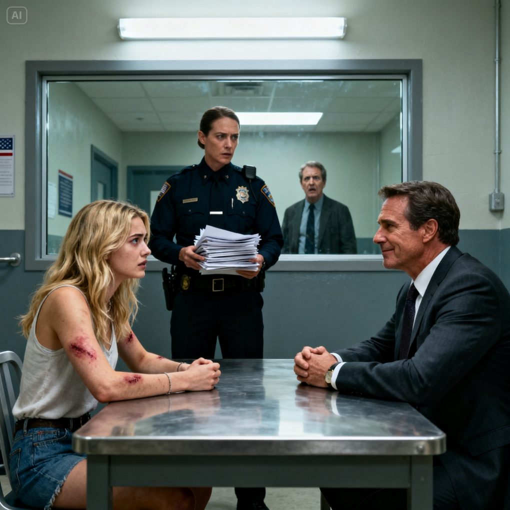 “Dad,” she whispered, voice shaking. “I’m at the police station… I—I didn’t know who else to call. Daniel hit me, but now he’s telling them I attacked him. And they believe him.”