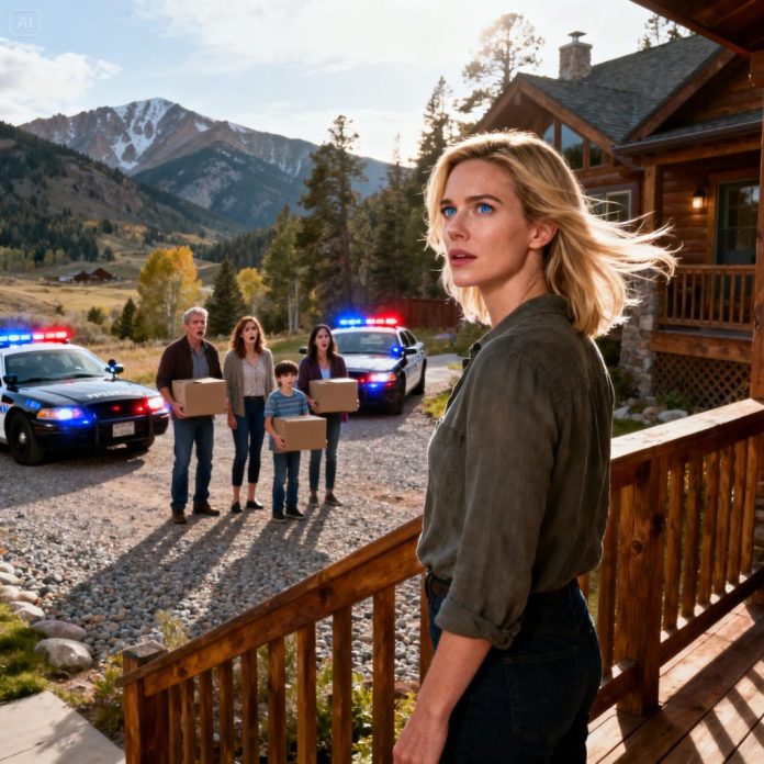 While I was at work, my parents, my sister, and her two kids started hauling their boxes into my mountain home without asking. My mother announced, as if it were a fact, “From now on, we’re all living here. This house belongs to the family.” I didn’t argue. I just changed every lock… and called the police before their “big move-in day.” When they showed up, ready to unload everything, flashing lights and patrol cars blocked the entrance. Their faces drained of all color…