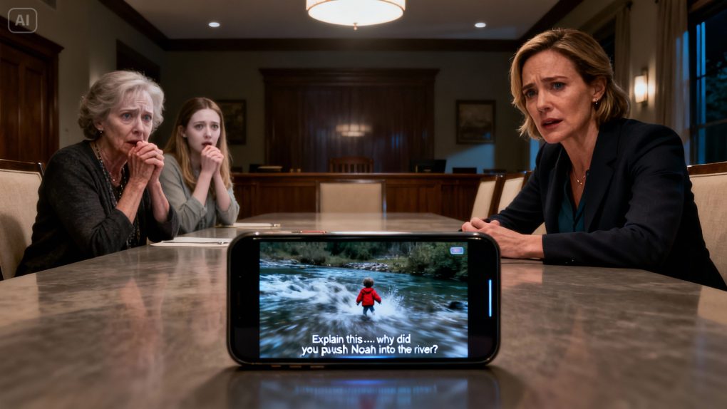 I’m Amanda Carter—a pediatrician with 10 years on the job—and I’ve never felt my blood turn to ice like it did in that moment. I set my phone on the table, hit play, and whispered, “Explain this… why did you push Noah into the river?” My mother and sister went ghost-white, trembling. On the screen, my 4-year-old screamed, “MAMA, HELP!” before the current swallowed him. But the twist that shattered me? Noah didn’t die. Someone took my son. And the mastermind might be the people I called family.