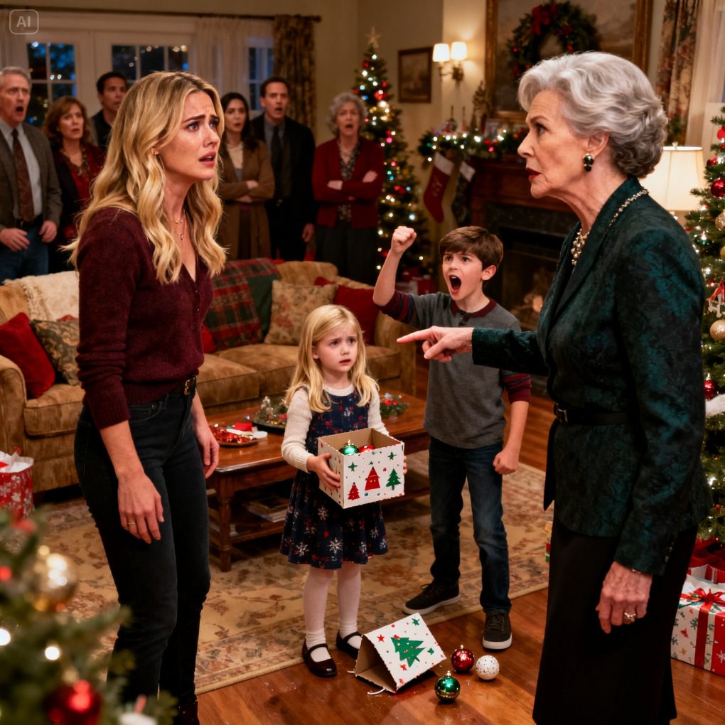 At Christmas, my mother-in-law looked at my six-year-old daughter and said, “Kids born from your mother’s cheating don’t get to call me Grandma.” She said it right after refusing the gift my daughter had made for her. Then my son stood up and said something. And suddenly, the whole room went silent — frighteningly silent…