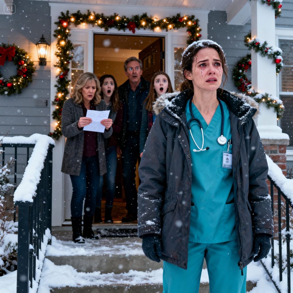 “On Christmas Eve, I was pulling a double shift in the ER. Yet they—my parents and my sister—told my 16-year-old daughter there was ‘no room for her.’ When she choked out, ‘Mom… I had to eat alone in an empty house,’ it felt like something tore inside me. I didn’t explode. I acted. And the next morning, when they opened their door and started screaming at the letter I left… I knew their real nightmare had only just begun.”