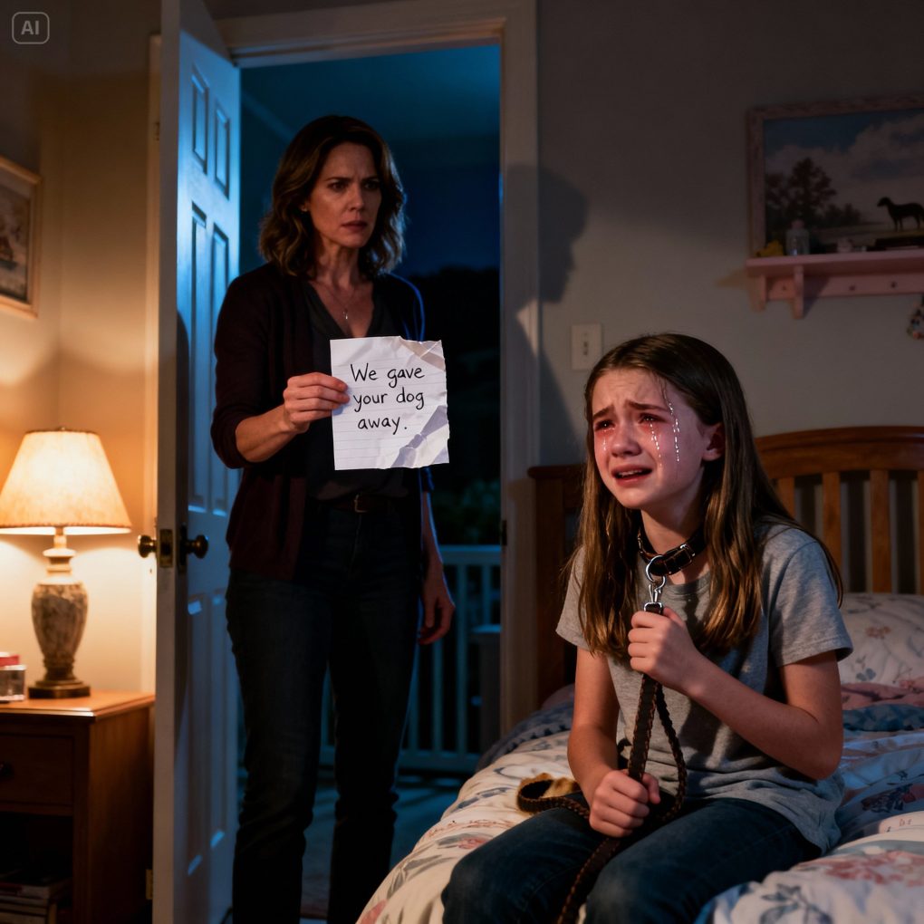 My eleven-year-old, Sophie, stood in the hallway holding it with both hands, shaking so hard the paper crinkled. Her cheeks were wet, her voice small. “Mom… they took Buddy.”