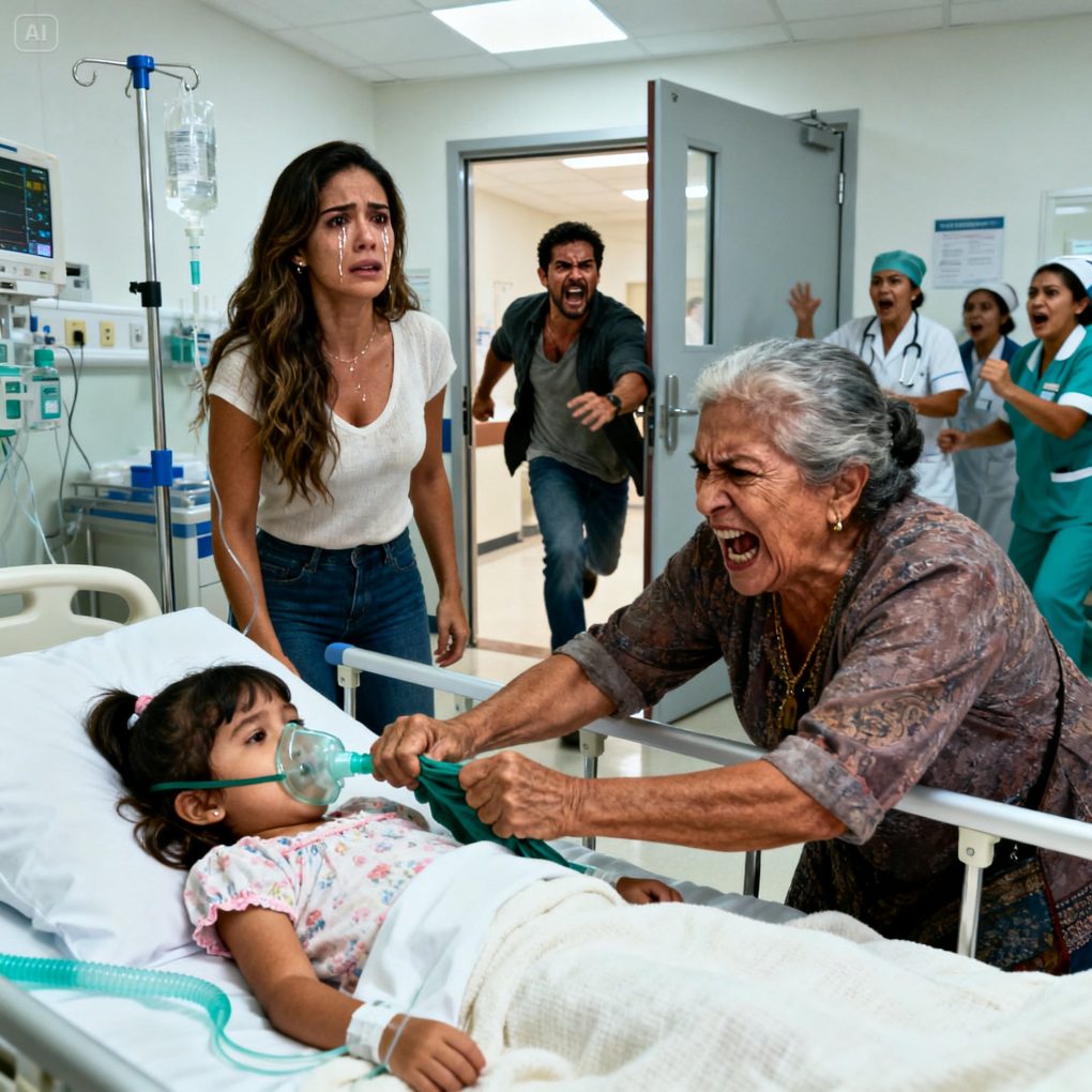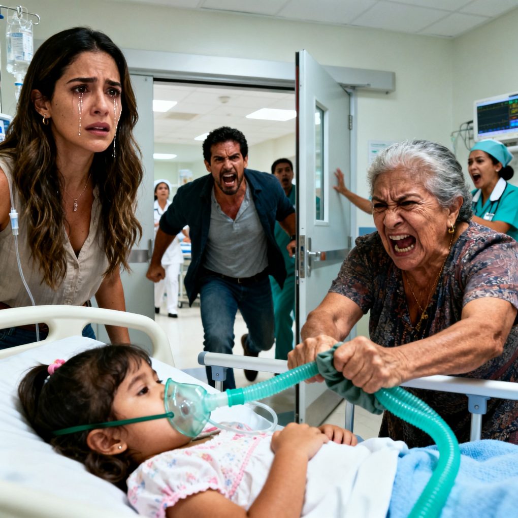 —¡Basta de dramas! —gritó, y en un movimiento brutal, arrancó la mascarilla de oxígeno del rostro de la pequeña.