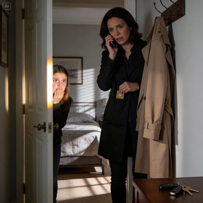 She slipped something—small, metallic—into the pocket of Mom’s coat hanging by the door.