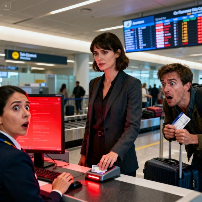 I didn’t argue. I didn’t roll my eyes or defend myself. Instead, I took the ticket silently, stepped forward, and placed my ID on the counter’s scanner. The agent looked bored for a split second—until the screen flashed bright red. Her eyes widened. She glanced at me, then back at the screen, then at the passport again. “Ma’am, just a moment,” she said, her voice suddenly respectful, almost nervous.