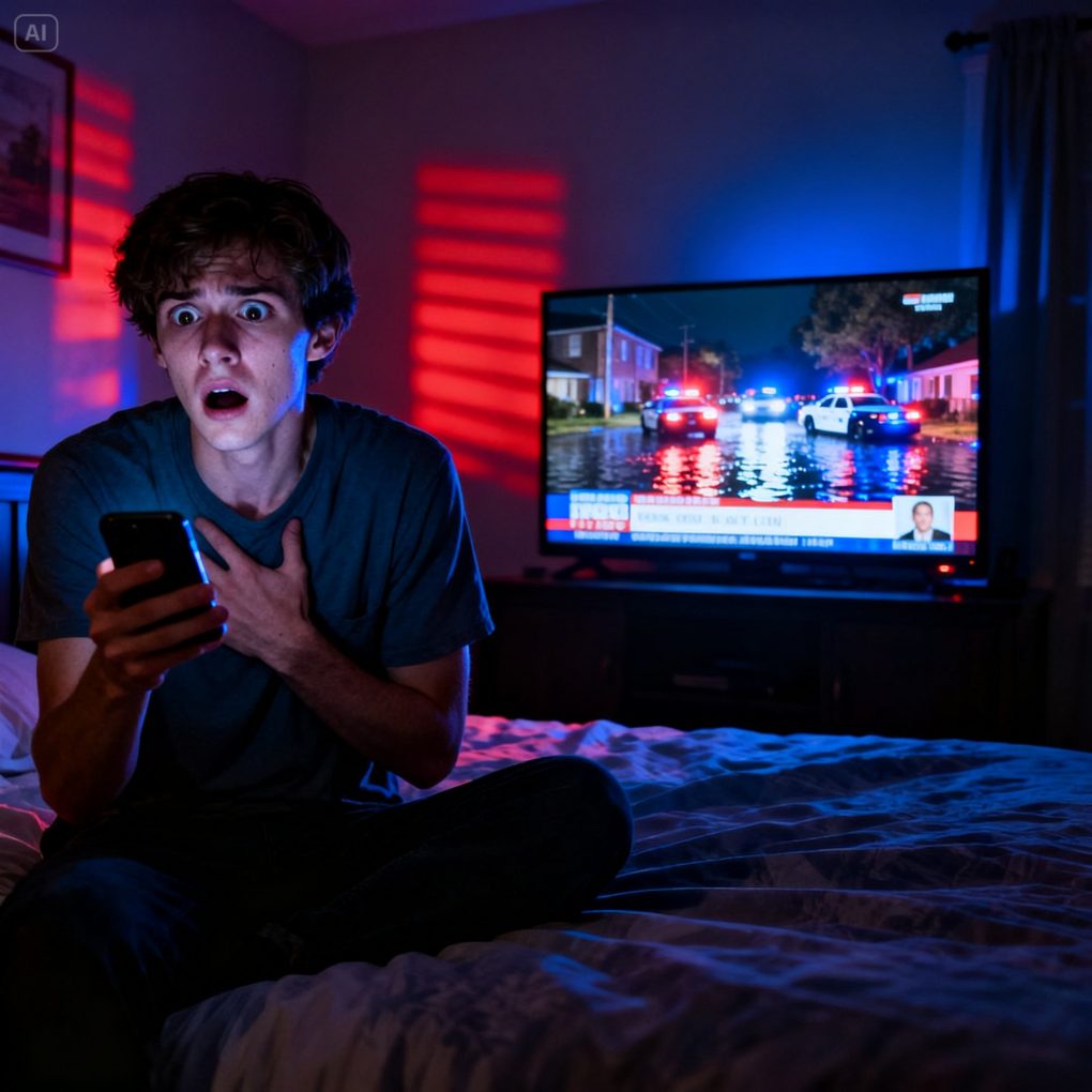 I turned toward the TV in the waiting area as the “Breaking News” banner flashed across the screen. The reporter stepped back from an unfolding scene—police cars flooding my street, lights blazing, officers running toward a house with weapons drawn.