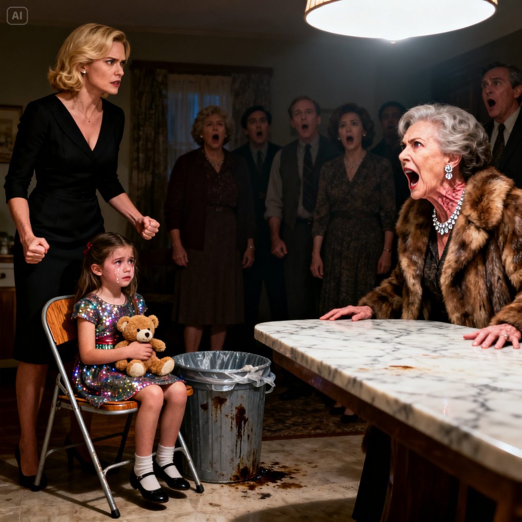 At Christmas dinner, my 9-year-old daughter was seated ALONE next to the trash can — on a folding chair. Everyone acted as if it were completely normal. When I walked in, she stood up, came to me, and said, “Mom, can you do the thing you said you would do if I ever felt bad again?” So I did. Five minutes later, my mother started screaming…