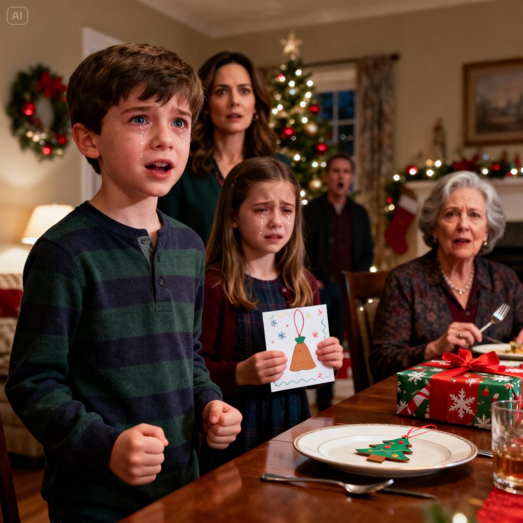 At Christmas, my mother-in-law looked at my 6-year-old and said: “Children from mommy’s cheating don’t get to call me Grandma,” right after rejecting the gift my daughter had proudly made for her. then my son stood up and saidThis.The whole room went dead slient…