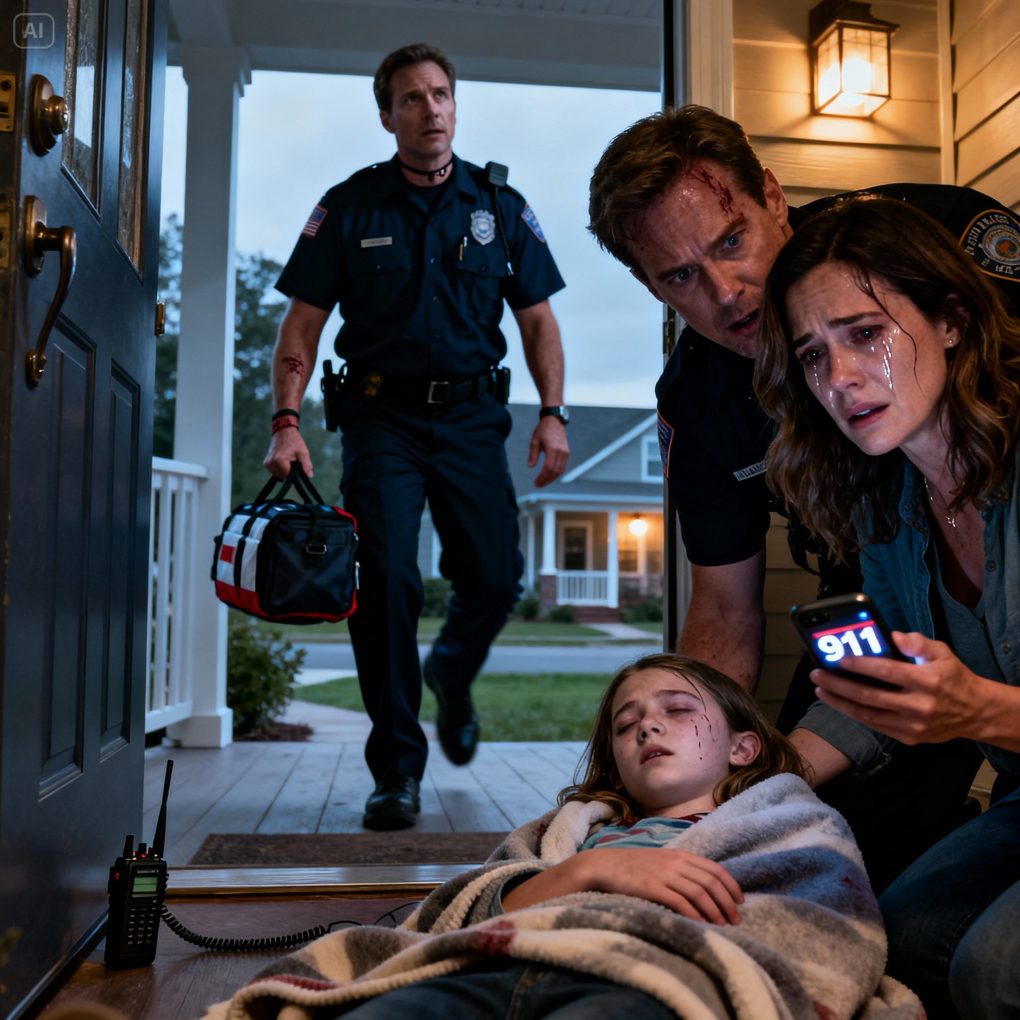 When I came home from my business trip, my daughter was collapsed at the entrance. My husband shrugged. “I just disciplined her a bit. You’re being overprotective.” I called an ambulance, tears streaming down my face. When the paramedic arrived and saw my husband’s face, he froze. He whispered in my ear, “Ma’am… is this man your husband? Actually…”