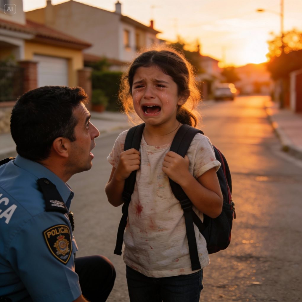 La tarde caía sobre las afueras de Zaragoza cuando Lucía Gómez, una niña de diez años, irrumpió corriendo en la pequeña plaza del barrio. Sus mejillas estaban enrojecidas y las lágrimas le nublaban la vista. Al ver a dos agentes de policía patrullando, no dudó: se lanzó hacia ellos gritando con desesperación.
