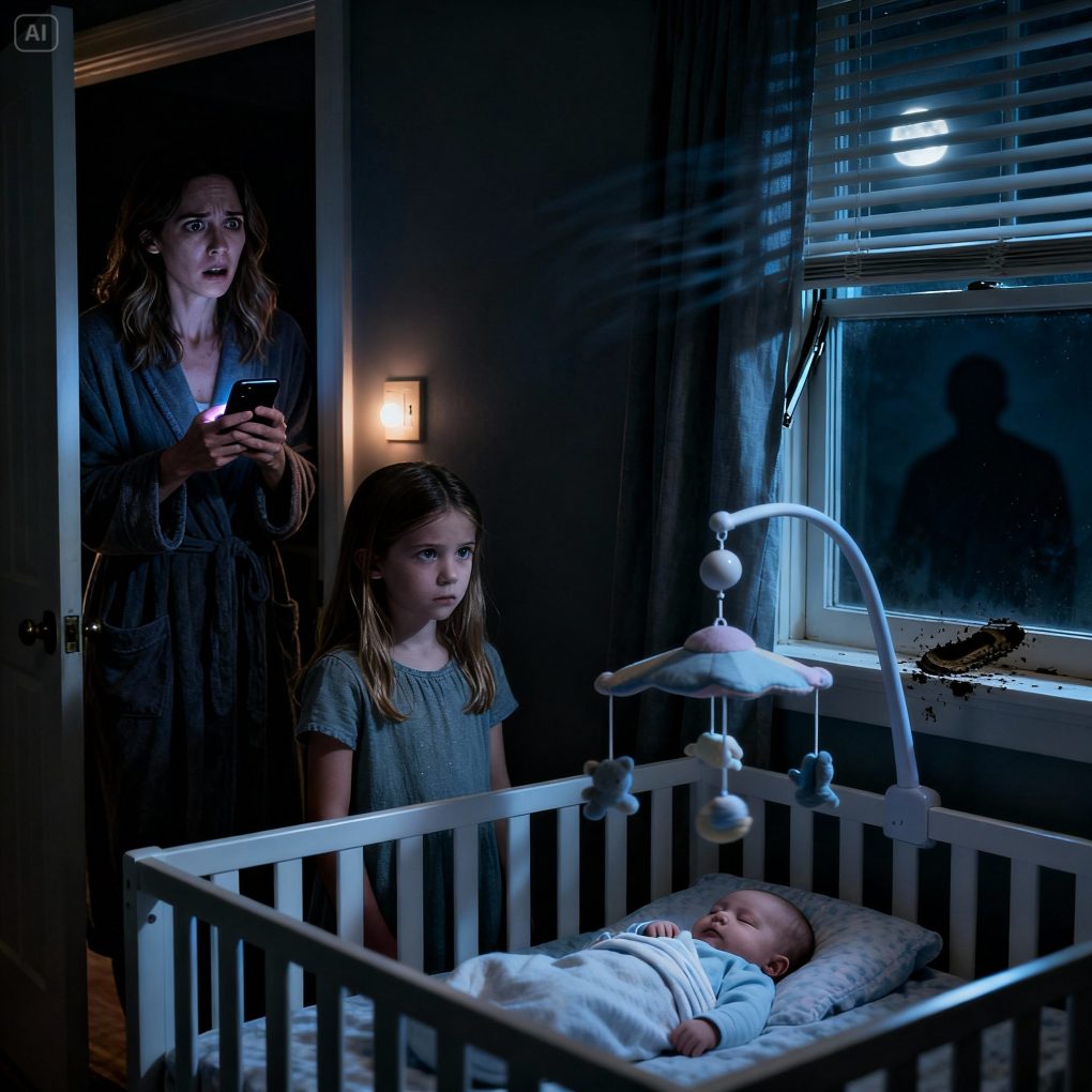 “There’s—someone in my baby’s room,” I whispered, every word scraping my throat. “My daughter is standing there. My newborn is—please, send police. Now.”