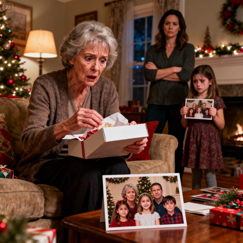 The family photo shoot was supposed to be simple—matching sweaters, fake snow, my mother insisting on “just one more pose.” My six-year-old daughter, Lily, sat proudly in the front row, hands folded, smiling like a little angel. She practiced that smile all week, excited to finally be included in something with the Whitman family.