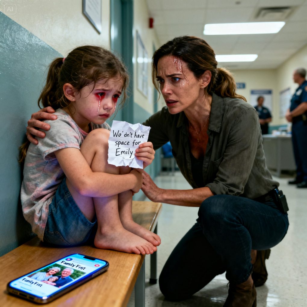 Emily lifted her head when she saw me. “Mommy,” she whispered, voice cracking, “did I do something bad?”