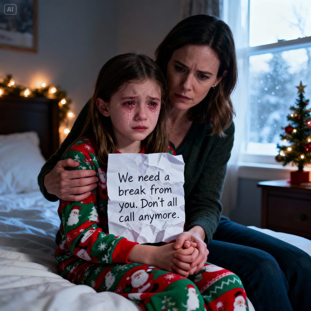 My daughter Ava, nine years old and still believing that Christmas Eve was supposed to feel magical, came into my room clutching a piece of paper with both hands. Her pajamas were twisted, her eyes swollen, her voice shaking.
