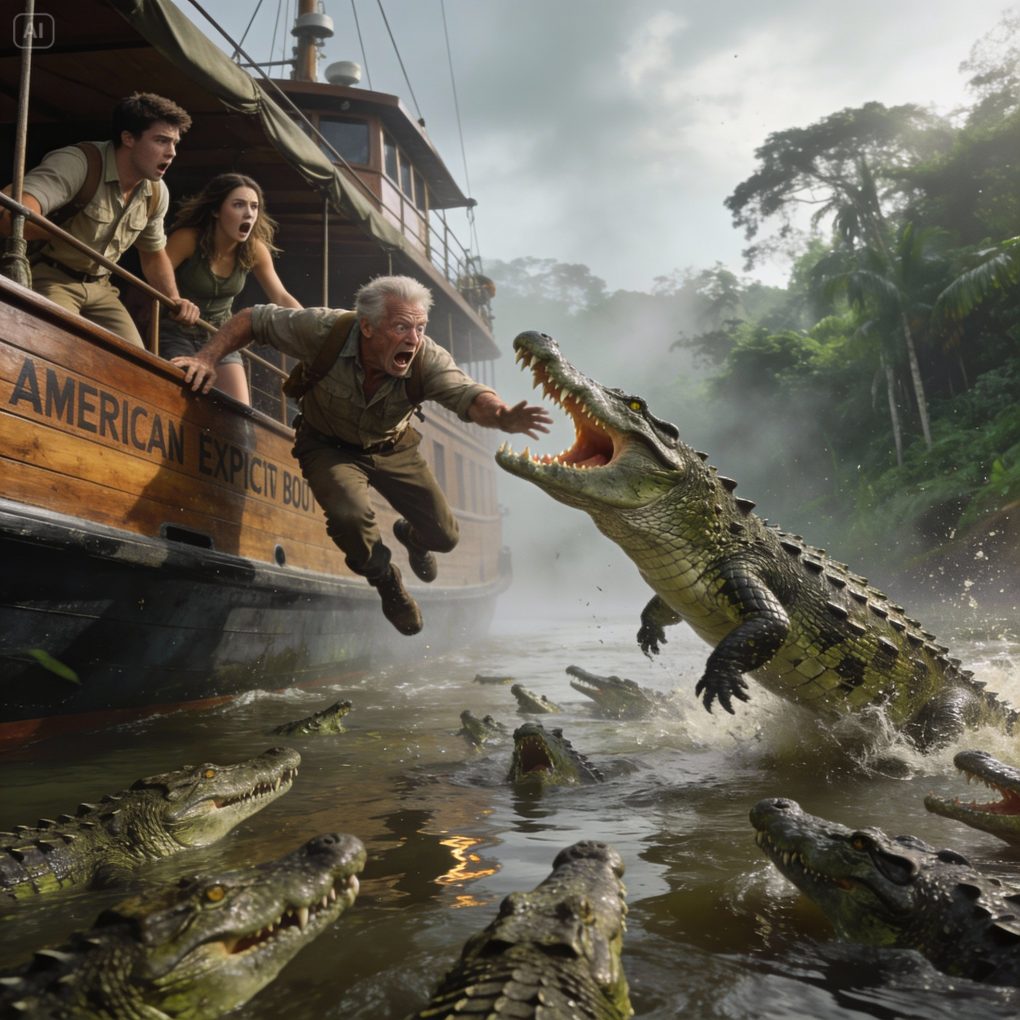 My feet slid, wood scraped beneath my shoes, and then I plunged into the warm, muddy water. The splash echoed across the trees. The guide who had been with us earlier was nowhere in sight; I later suspected they dismissed him on purpose. When I surfaced, sputtering, I saw Emily leaning over the edge, her voice cold as steel: “Go down to the river with the crocodiles.”