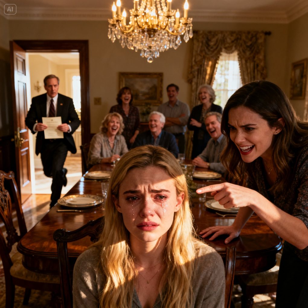 During dinner, my sister pointed at me and laughed loudly: “You’re the child Mom never wanted.” Everyone chimed in. I stayed silent. Then the family attorney came in holding a sealed letter from my mother. The moment he read the first line… my sister went completely still, like she forgot how to breathe.