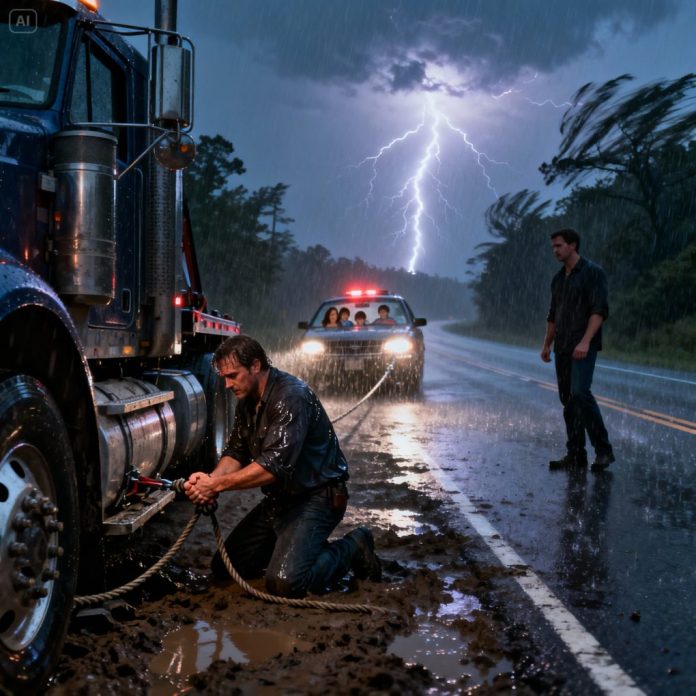 I was an exhausted truck driver caught in a violent storm when I pulled over to help a family stranded on the side of the road. I towed their car for free, and the father simply shook my hand before they drove away. I thought nothing of it—until two weeks later, when my boss summoned me to his office, and I walked in to find that same man sitting there, waiting for me.