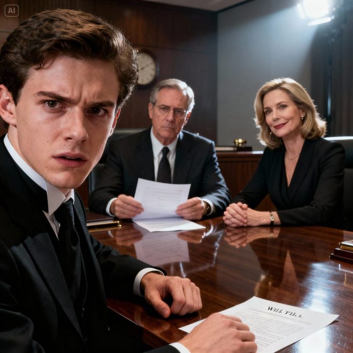 She straightened in her chair and spoke clearly, before the lawyer even finished the first page. “Let’s not waste time,” she said. “My husband removed Ethan from the will months ago. He didn’t want… complications.”