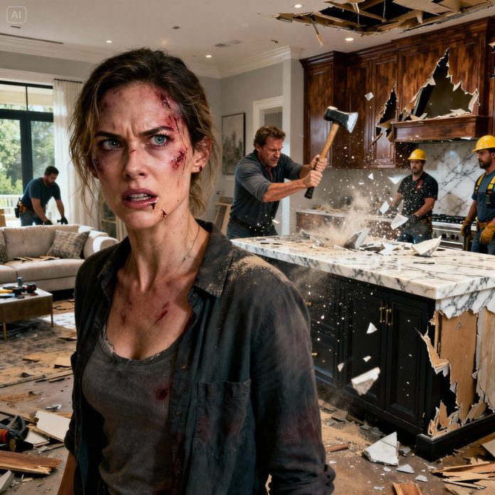I rushed in and froze. My stepfather, Ronald, stood in the middle of the room, gripping a sledgehammer like he was demolishing a condemned building. Marble countertops I had saved for years to install were cracked in half. Cabinets—custom-made, measured to the inch—were being ripped from the walls by a small crew I recognized immediately.