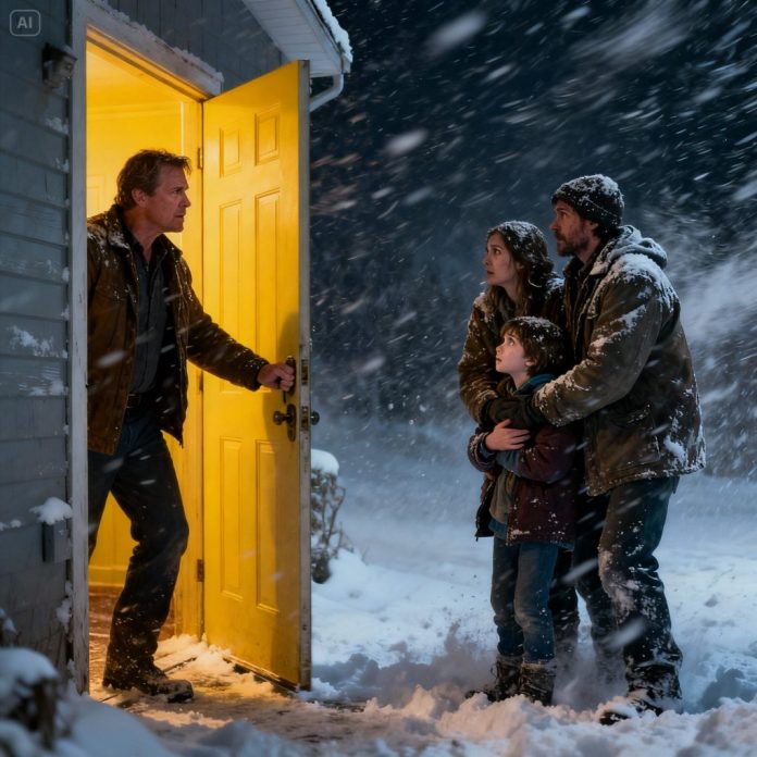 A man, a woman, and two small children—soaked, shaking, barely standing. Their car had broken down miles back, and they’d been walking in the storm, hoping to find shelter before the cold took them.