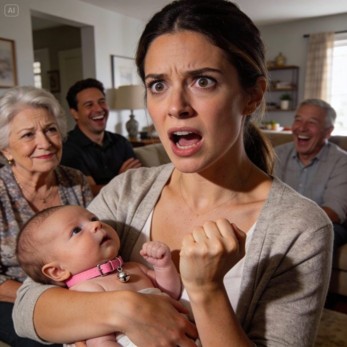 “Oh, don’t just stare,” she said, reaching forward. Before anyone could react, she lifted the collar and put it around my newborn daughter’s neck.