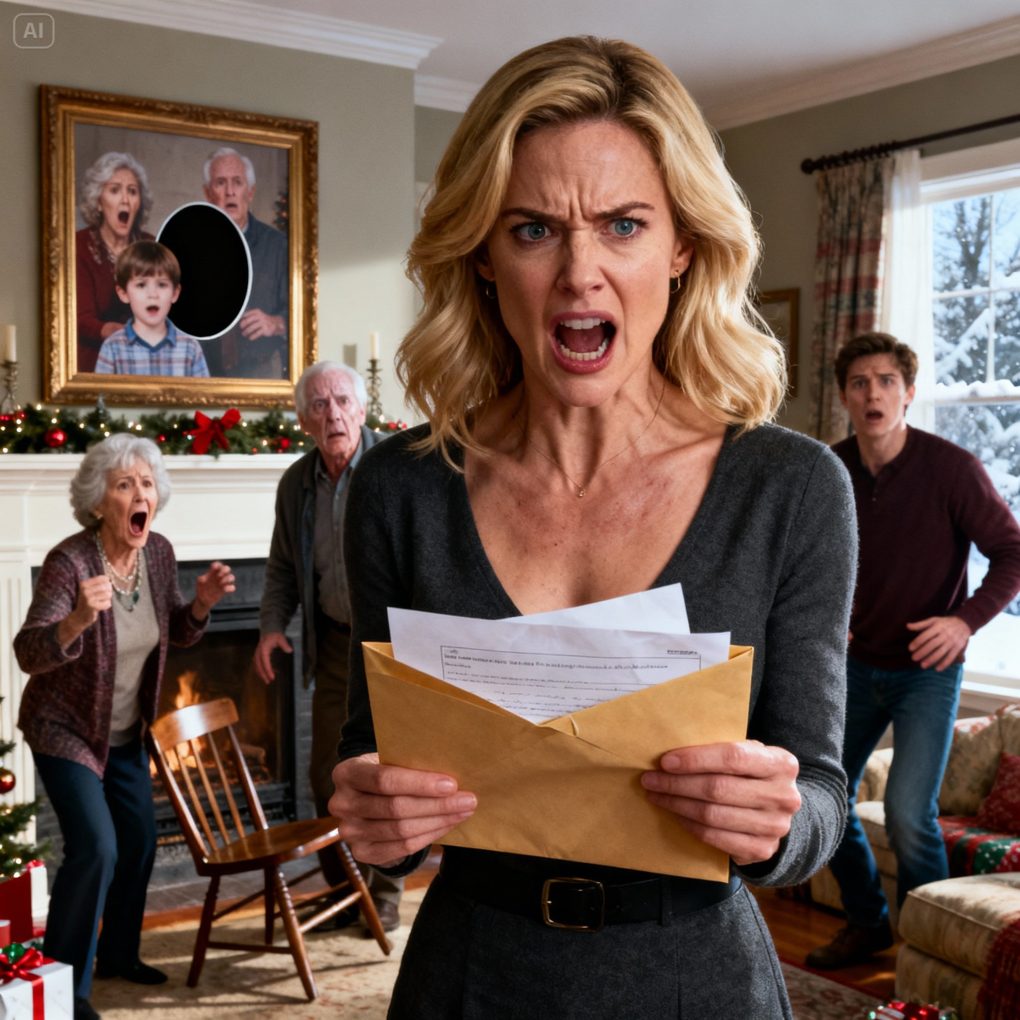 On Christmas night, I saw a framed family photo—but my daughter’s face, only 9-years-old, had been completely CUT OUT. No one said a word about it. She swallowed hard… then stayed silent. The next day, I handed my parents an envelope. They opened it—and started SCREAMING…