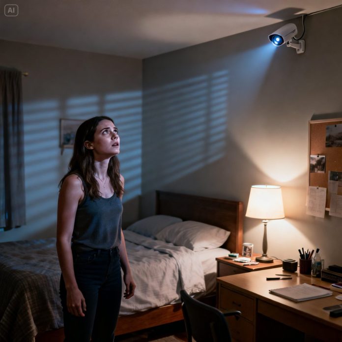 I was sixteen. My bedroom was the only place I could shut the door and breathe. Now even that felt invaded. Every time I changed clothes, every time I sat on my bed, I imagined the red light blinking on. Watching. Recording.