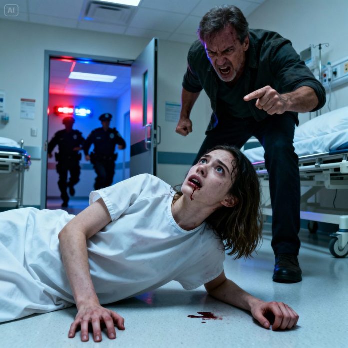 “You’d better start earning your keep,” my stepdad yelled as I lay in bed, barely able to move after surgery. I told him I couldn’t work yet. He slapped me so hard I crashed onto the hospital floor, the metallic taste of blood filling my mouth as my hands trembled. He barked, “Stop pretending you’re weak.” Minutes later, the police arrived in horror.
