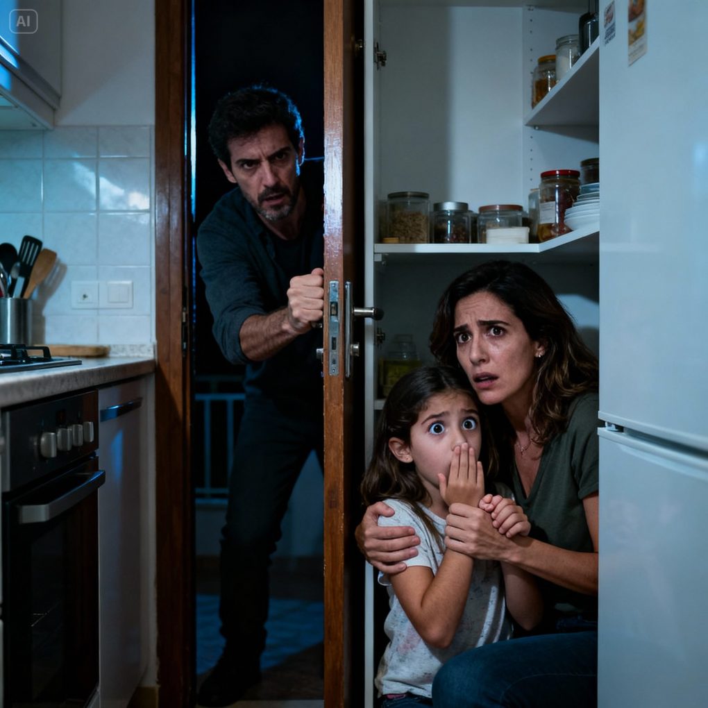 Los pasos se acercaron a la cocina. Vi su sombra cruzar la rendija del armario. Abrió cajones, golpeó la mesa, tiró una silla al suelo. Cada ruido me hacía pensar que nos descubriría. Mi mente repasaba opciones imposibles: salir corriendo, enfrentarme a él, proteger a mi hija con mi propio cuerpo.