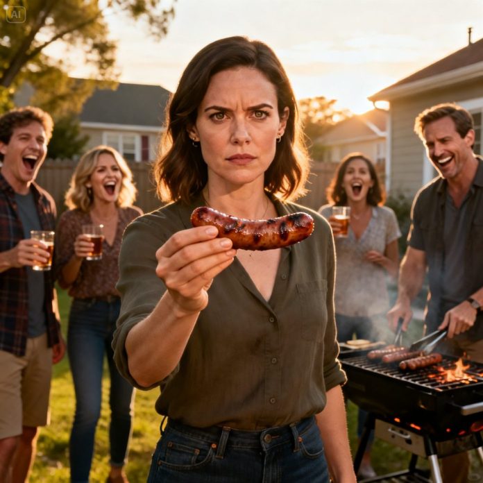 I felt something snap, not loudly, but cleanly, like a rope cut with a knife. My face didn’t burn. My hands didn’t shake. I simply raised the sausage I was holding, looked directly at Lauren, and said calmly,