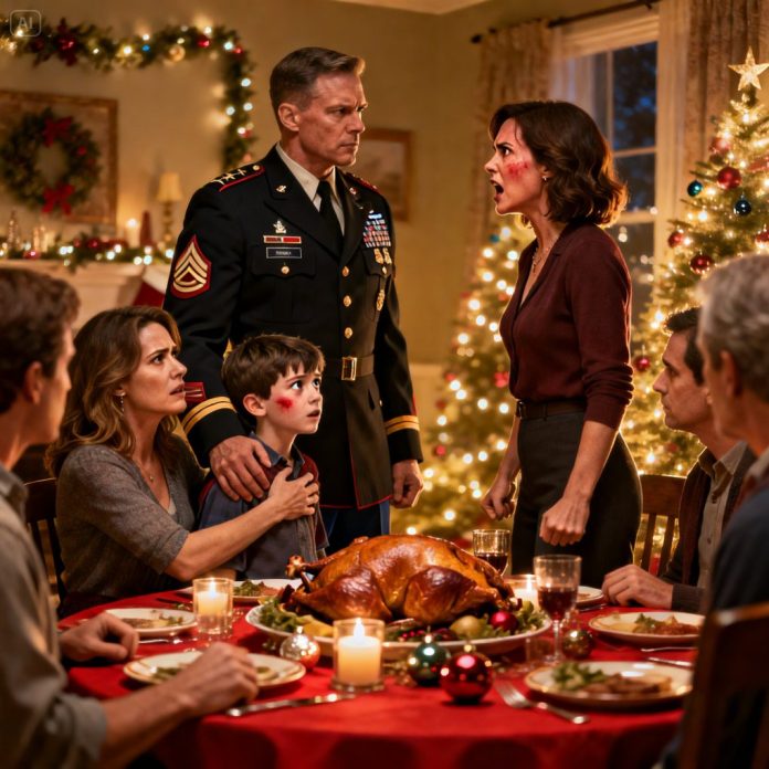 My sister slapped my child right there at Christmas dinner — and then said I was “overreacting.” Everyone just sat there, nobody said anything. But then my husband — a military commander — stood up, looked her straight in the eye and said, “Get out of here.” She never came back.