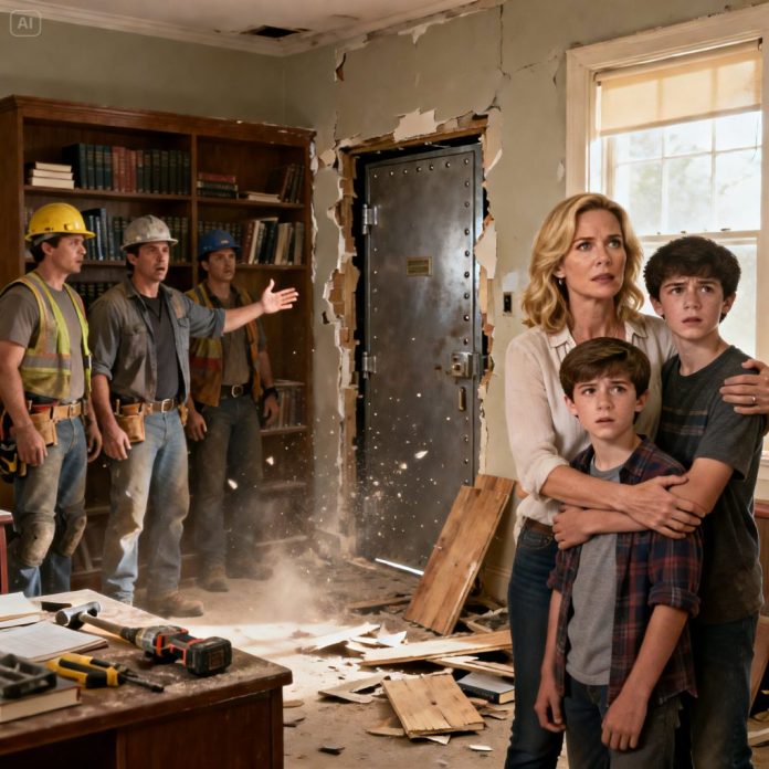 One year after my husband passed away, I hired a crew to renovate his old office. Just as I arrived at the church, the contractor called and said, “Ma’am, you need to come see what we’ve just discovered immediately. And please—don’t come alone. Bring your two sons with you.” I asked why, but he refused to explain. When we arrived, my heart nearly stopped beating…