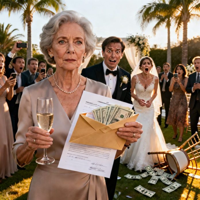 At my daughter’s beach wedding, her fiancé smirked and said, “Pay $50,000 for this luxury—or disappear forever.” I blinked as my daughter added, “Or enjoy solitude in an old-age home.” I calmly sipped my champagne, smiled, and whispered, “You forgot one thing.” Their faces went pale. Moments later, chaos erupted—and I never lifted a finger.