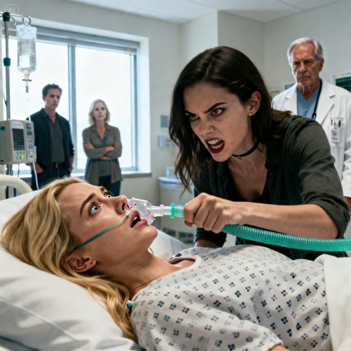 In the stark white hospital room, my sister suddenly yanked the oxygen tube off my face. “Stop pretending,” she snarled, “you just want attention.” I opened my mouth as the air was ripped from my lungs. My parents stood there, silent in a cruel way, not one of them stepping forward. As my vision began to blur, my sister even sneered. None of them realized that my surgeon—my grandfather’s close friend—was standing right behind her and had heard everything. At my grandfather’s will reading, he stepped forward, placed a hand on my sister’s shoulder, and said six words… ending everything.