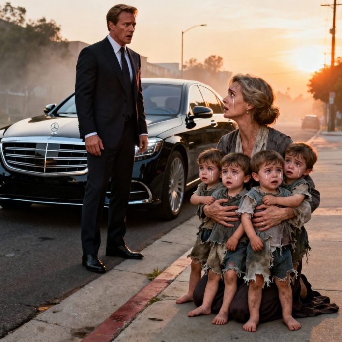 I had just stepped out of my luxury car when I inadvertently made eye contact with a beggar woman on the roadside. My heart stopped – it was her, the woman I had loved and lost. She quickly bowed her head and clutched her four twins tightly to her chest. But when they looked up, I was stunned: four tiny faces… exactly like mine. “It can’t be… they… they’re not my children?” She trembled and recoiled. “How… whose children are they?” I choked out. She tightened her grip on the children, shaking uncontrollably. “Don’t come any closer… you shouldn’t know the truth.” And then, my next reaction… horrified everyone around me.