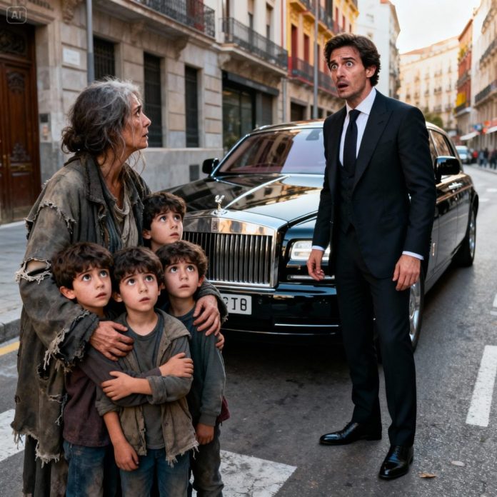 Acababa de bajar de mi lujoso coche cuando, sin darme cuenta, miré a los ojos a una mendiga al borde de la carretera. Se me paró el corazón: era ella, la mujer que había amado y perdido. Inclinó la cabeza rápidamente y abrazó a sus cuatro gemelos con fuerza contra el pecho. Pero cuando levantaron la vista, me quedé atónita: cuatro caritas… exactamente iguales a la mía. “¿No puede ser… que no sean mis hijos?”. Tembló y retrocedió. “¿Cómo… de quién son hijos?”, pregunté con voz ahogada. Apretó a los niños con más fuerza, temblando incontrolablemente. “No se acerquen más… no deberían saber la verdad”. Y entonces, mi siguiente reacción… horrorizó a todos a mi alrededor.