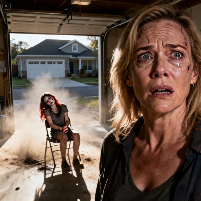 My daughter had been silent for an entire week—no phone calls, no replies to my messages. A mother’s instinct wouldn’t let me wait any longer, so I drove straight to her house. My son-in-law opened the door, smiling calmly. “She went on a trip.” I almost believed him. Until, from behind the locked garage, I heard a familiar, muffled groan. My heart tightened. I rushed toward the metal door. What I saw inside shattered a mother’s heart…
