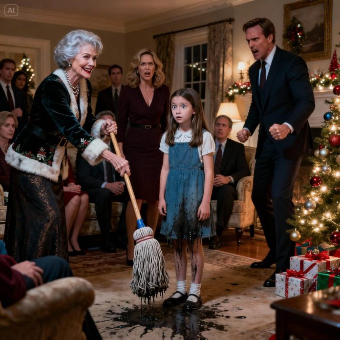 On Christmas Eve, my mother handed my daughter a filthy mop in front of twenty guests and my wife. “You eat here for free, so start cleaning,” she said with a triumphant smile. My sister’s daughter chimed in, “That’s exactly what you deserve, Sophia.” That night, we packed our bags and left. But what I did the very next day turned the entire family upside down…