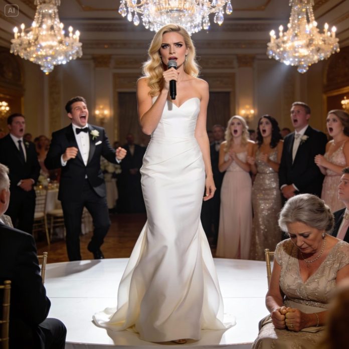 Something inside me cracked cleanly, like glass breaking without sound. I stood up slowly, walked to the stage, and took the microphone from Ryan’s stunned hands.
