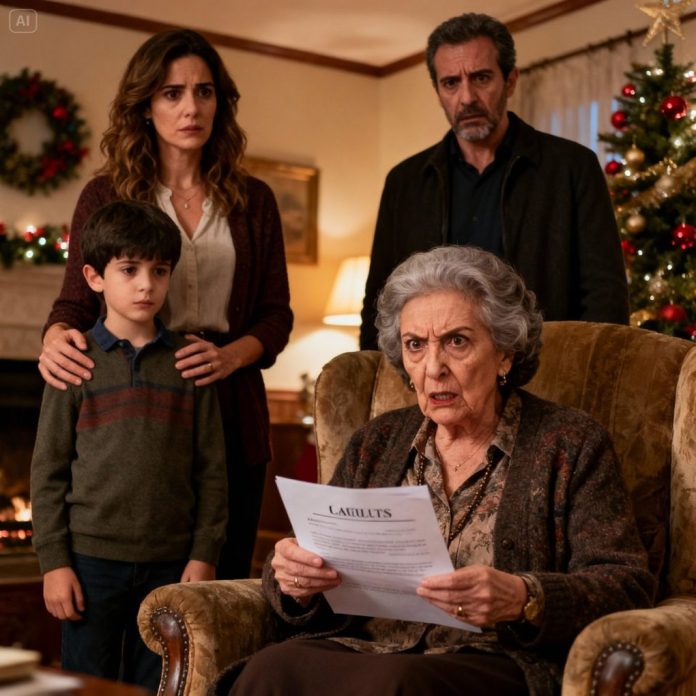 En Nochebuena, llevé a mi hijo de seis años a casa de mi abuela. Mi madre abrió la puerta, me miró de arriba abajo y dijo con frialdad: «Vete. No hay sitio para ti». Así que me di la vuelta sin decir palabra. Diez minutos después, mi abuela me llamó con la voz temblorosa de furia: «Vuelve. Ya». Y lo que pasó al volver a cruzar esa puerta… dejó a mis padres y a mi hermano paralizados.