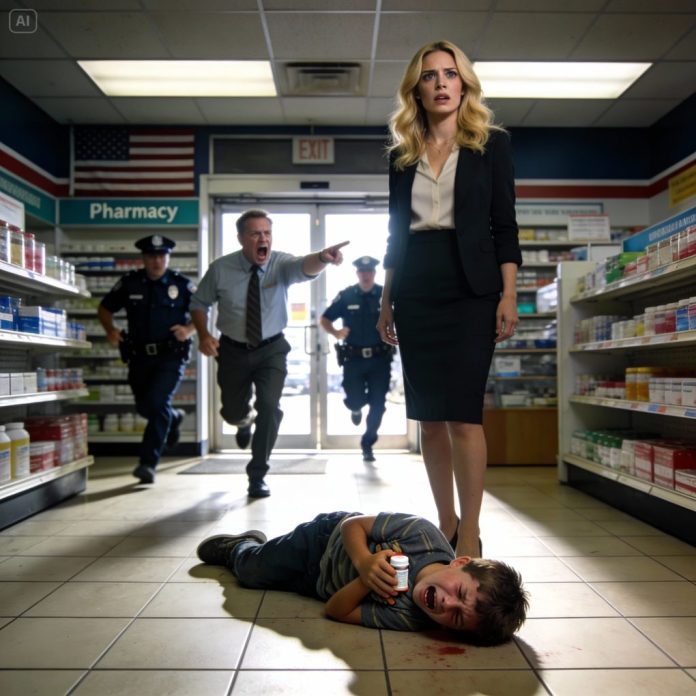 I caught an eight-year-old boy desperately trying to hide a bottle of medicine in his pocket. “A THIEF — CALL THE POLICE, NOW!” my boss screamed. The boy DROPPED TO HIS KNEES, breaking down in sobs. “PLEASE… MY MOM CAN’T TAKE THE PAIN ANYMORE.” When the police stormed into the boy’s apartment and discovered his mother LYING ON THE FLOOR, CLINGING TO LIFE,
