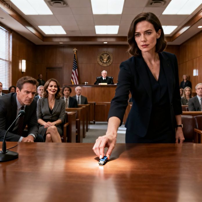 He said it softly, almost kindly—like he wanted the words to land slowly so they’d hurt longer. Then he leaned back in his chair and adjusted his suit, calm and polished, like this courtroom was just another room he could control.
