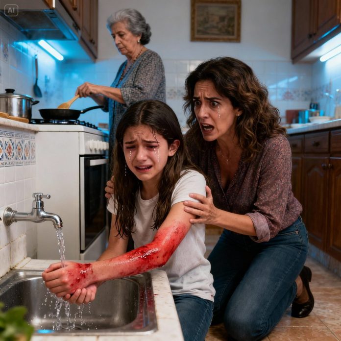 El día del cumpleaños número setenta de mi madre, Carmen, empezó como cualquier otra reunión familiar grande: prisas, calor en la cocina y demasiadas opiniones. Mi hija Lucía, de quince años, insistió en ayudar. Siempre ha sido responsable, y yo pensé que remover una olla de salsa no podía hacer daño. Yo estaba cortando verduras cuando escuché su grito. Un segundo de distracción bastó: el agua hirviendo cayó sobre su antebrazo izquierdo. La piel enrojecida se levantó casi de inmediato.